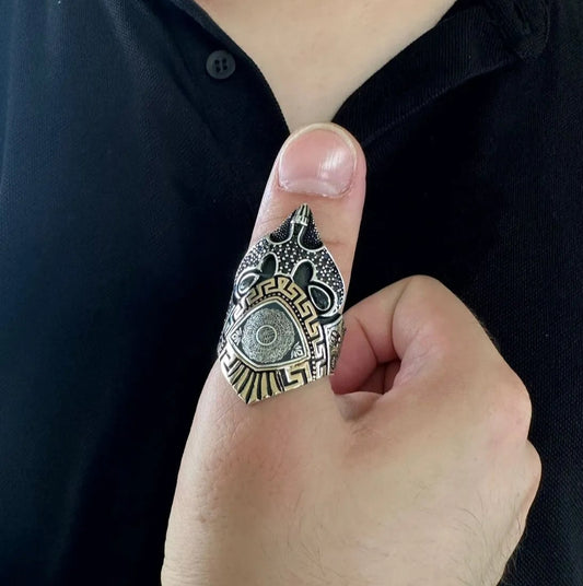 Evil Eye Prayer Embroidered Tawhid Chain Detailed 925 Sterling Silver Ring