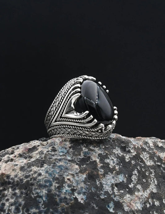 Onyx Stone Minaret Figured 925 Sterling Silver Ring