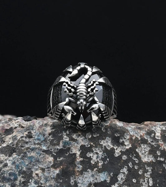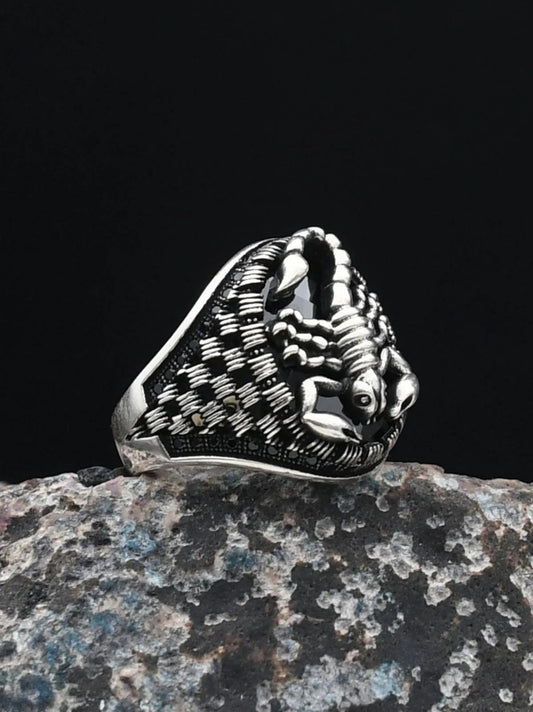 Black Zircon Stone Scorpion Figure 925 Sterling Silver Men's Ring