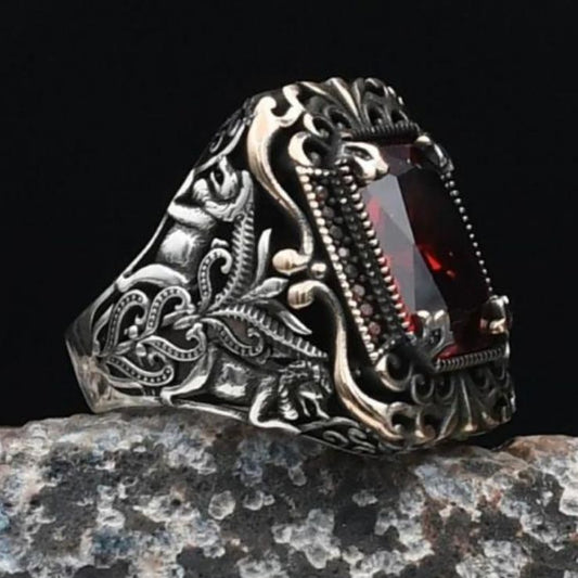 Special Design Red Zircon Stone Embellished 925 Sterling Silver Ring