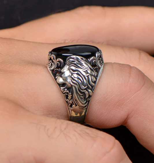 Onyx Stone and Zircon Stone Decoration Scale 925 Sterling Silver Ring