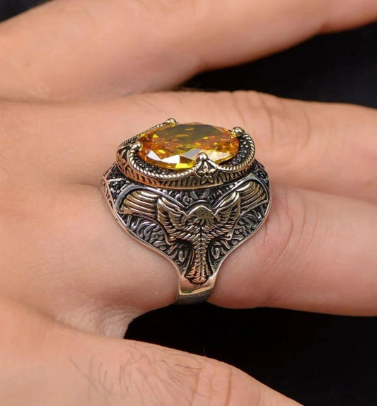 Special Design Phoenix with Citrine Zircon Stone 925 Sterling Silver Ring