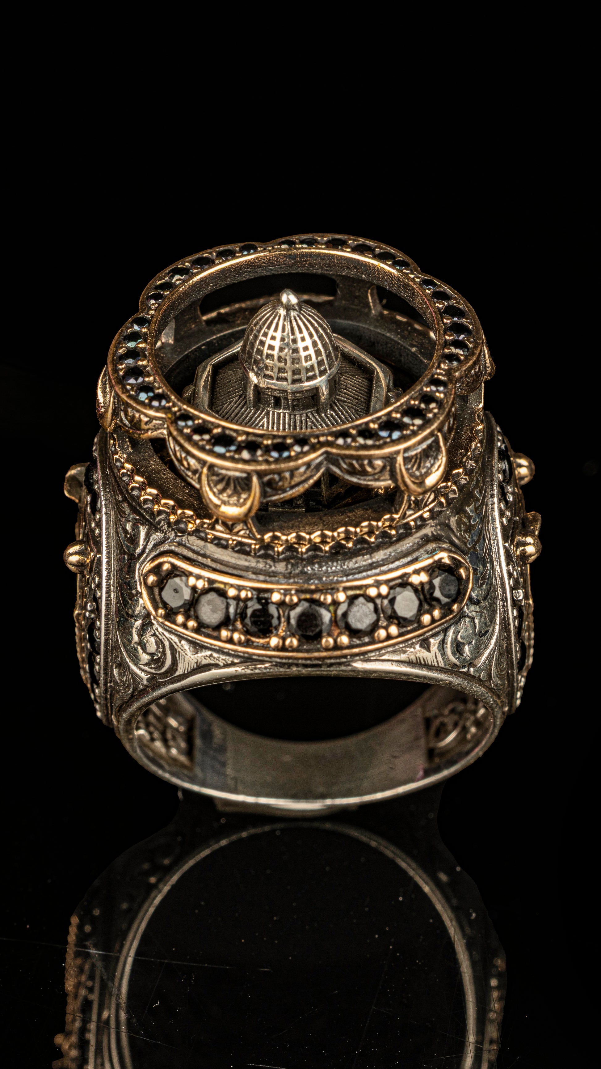 This expertly crafted men's ring features a unique mosque-inspired design, meticulously handmade from 925 sterling silver. Its intricate detailing highlights cultural artistry while offering durable elegance. Perfect for those seeking a distinctive accessory that combines tradition with refined craftsmanship.